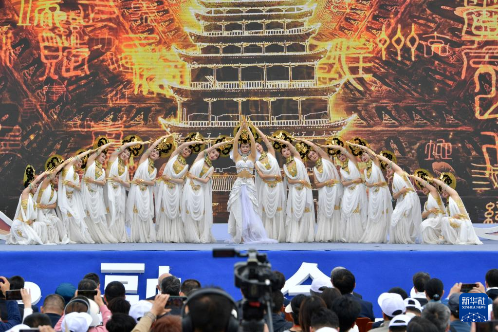 5月24日,甘肃省文化馆群文舞蹈团在启动仪式上表演敦煌舞《千手观音》。