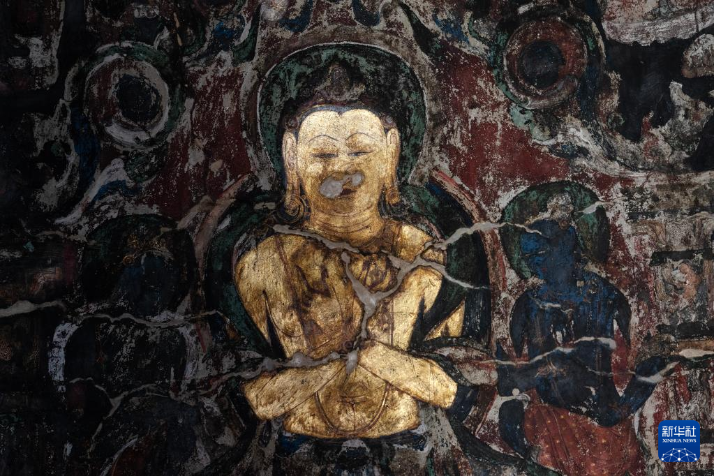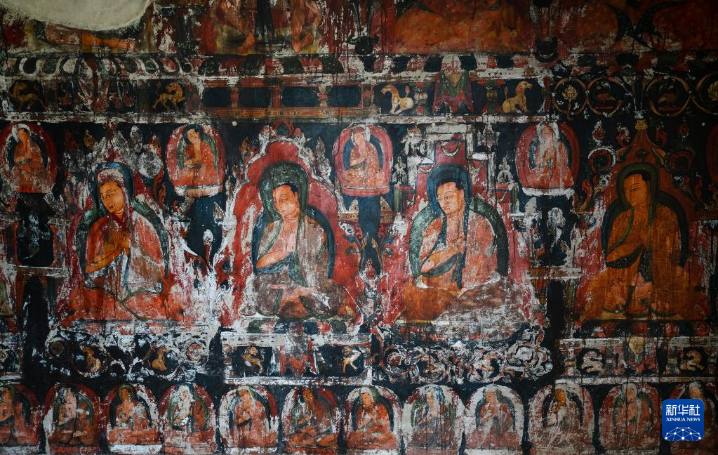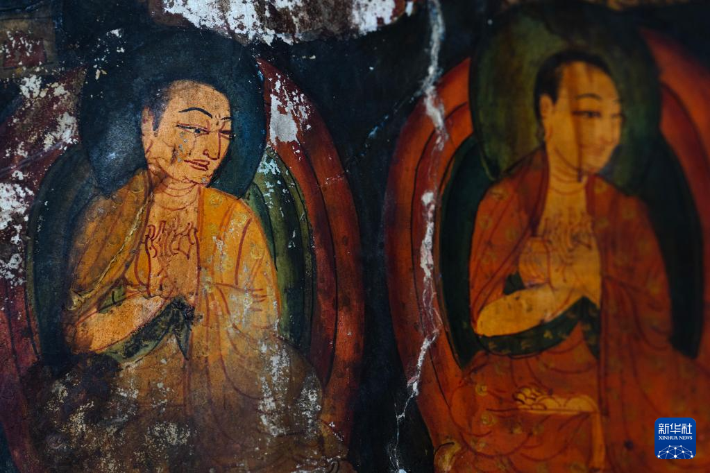 5月26日拍摄的皮央石窟壁画局部。
