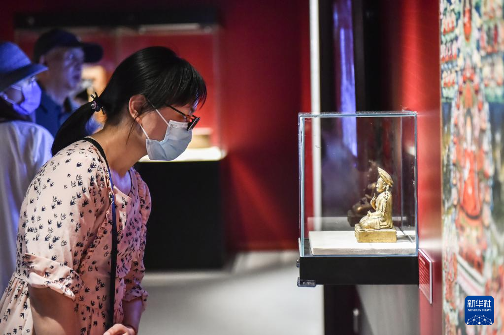 6月10日,2023“文化和自然遗产日”北京市主场活动暨北京白塔文化周开幕。观众在观看“吉祥妙塔 宝藏重光——白塔塔藏文物展”中展出的文物。