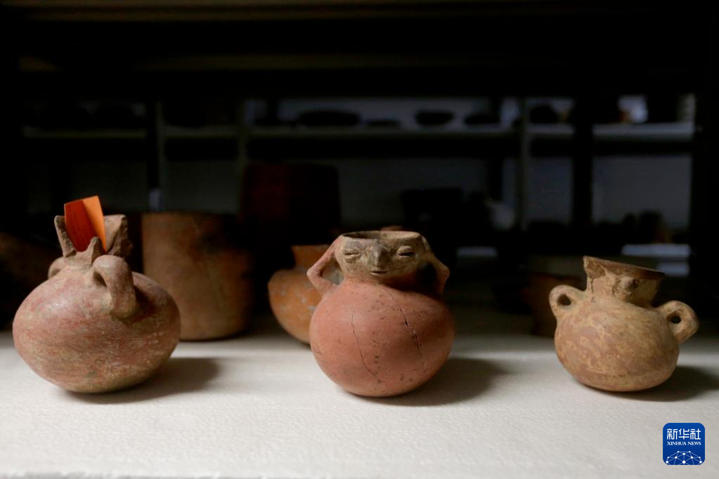 这是6月8日在洪都拉斯科潘玛雅遗址国际考古队仓库内拍摄的由中洪联合考古队发掘出的陶器文物。新华社发(卢西奥·塔沃拉摄)