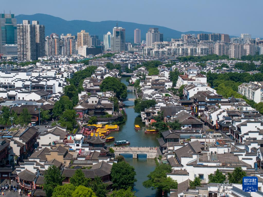 游客在南京夫子庙景区参观游玩(6月12日摄,无人机照片)。