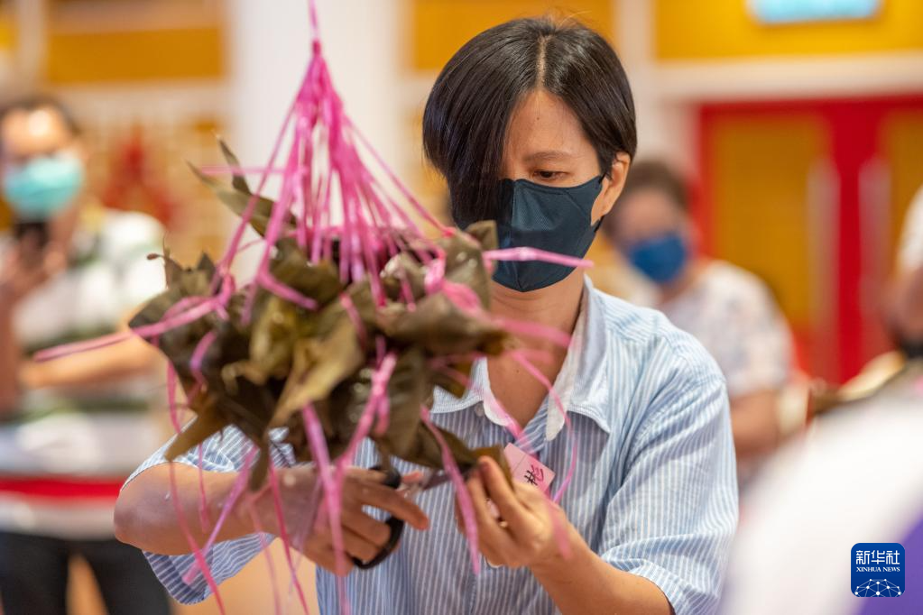 6月18日,人们在马来西亚吉隆坡参加裹粽比赛。