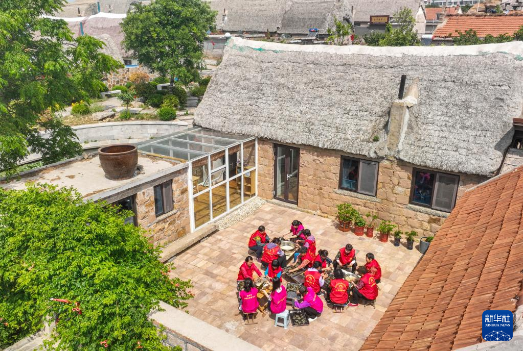 6月19日,在山东省荣成市俚岛镇大庄许家村暖心食堂,志愿者在包粽子。