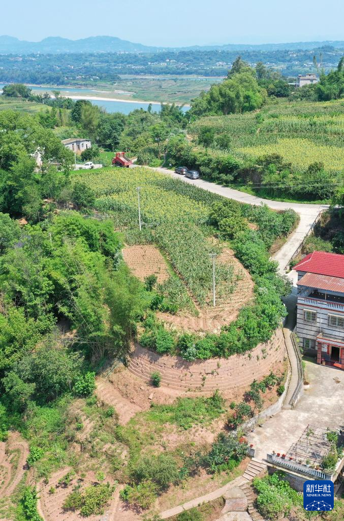 这是6月27日拍摄的神臂城全貌(无人机照片)。远处大桥为5月27日通车的神臂城长江大桥。