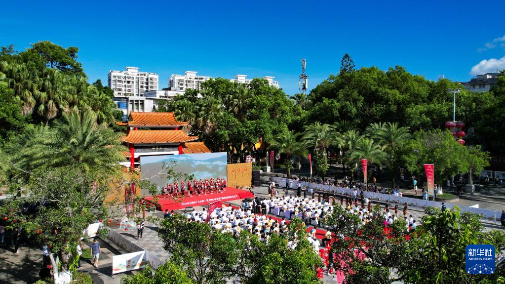 这是7月8日拍摄的五指山“上山爽一夏 故园·毕业季”暨州府故园文化节启动仪式现场(无人机照片)。