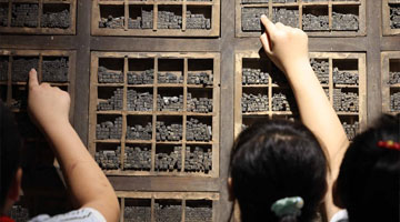 7月23日,小朋友在贵州剑河仰阿莎文化节上参加苗族水鼓舞活动。