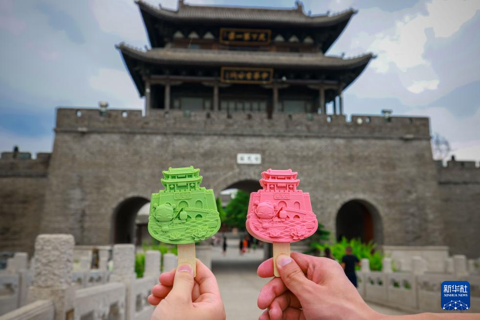 7月20日在山东省枣庄市台儿庄古城拍摄古建筑造型文创雪糕。