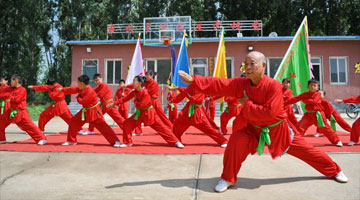 7月21日,在位于河北省滦州市的中国评剧艺术馆,戏曲爱好者在为孩子们表演。