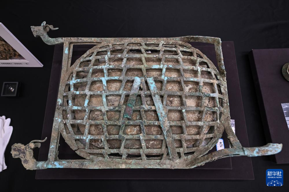 这是7月26日在三星堆博物馆拍摄的青铜龟背形网格状器。新华社记者 王曦 摄