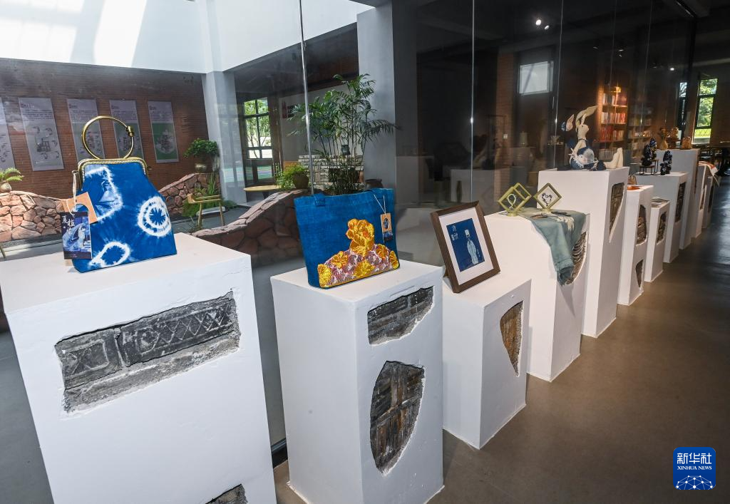 8月11日拍摄的葛家村艺术创富学院展示的各类乡村特色手工艺品。