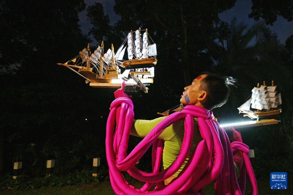 8月16日,表演者在新加坡举行的“新加坡仲夏夜空”艺术活动预展上进行艺术表演。