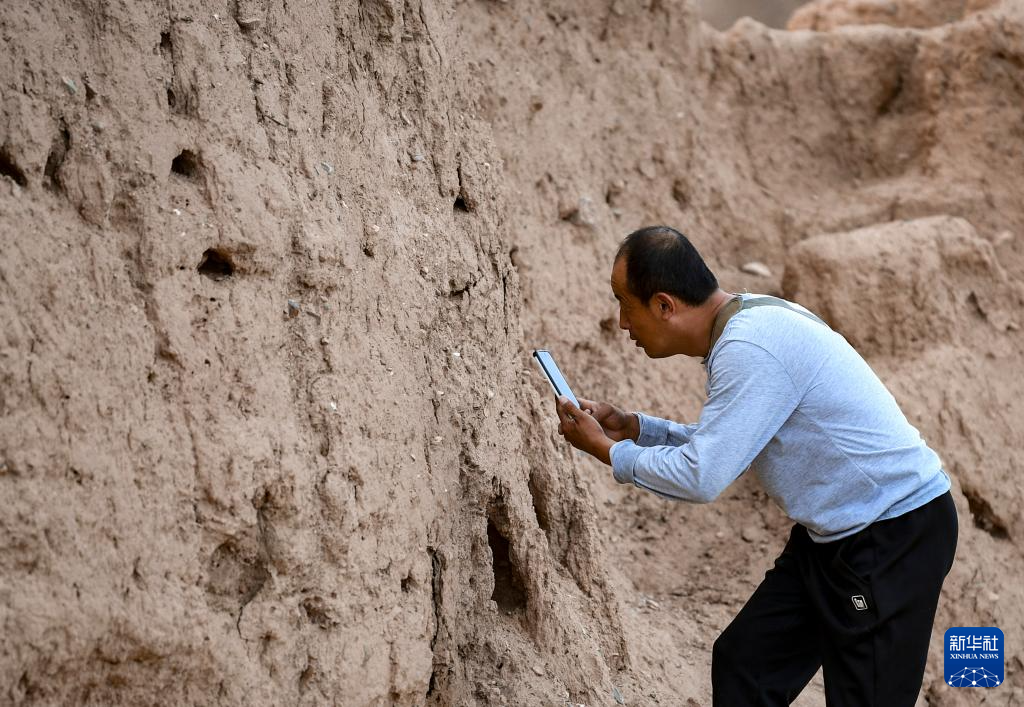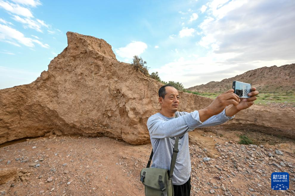 8月20日,董海宁巡查贺兰山沿线的明长城永宁段时用手机拍照记录。
