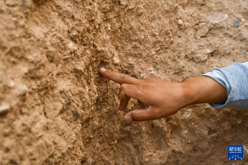 8月20日,董海宁介绍长城墙体修建时用到的芨芨草。