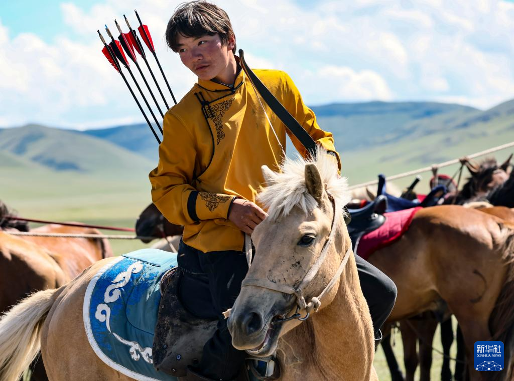 这是8月19日在蒙古国泰吉山谷举行的“游牧民族”世界文化节上拍摄的选手。