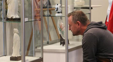 8月31日,在奥地利维也纳,一名观众在下美景宫内参观展品。