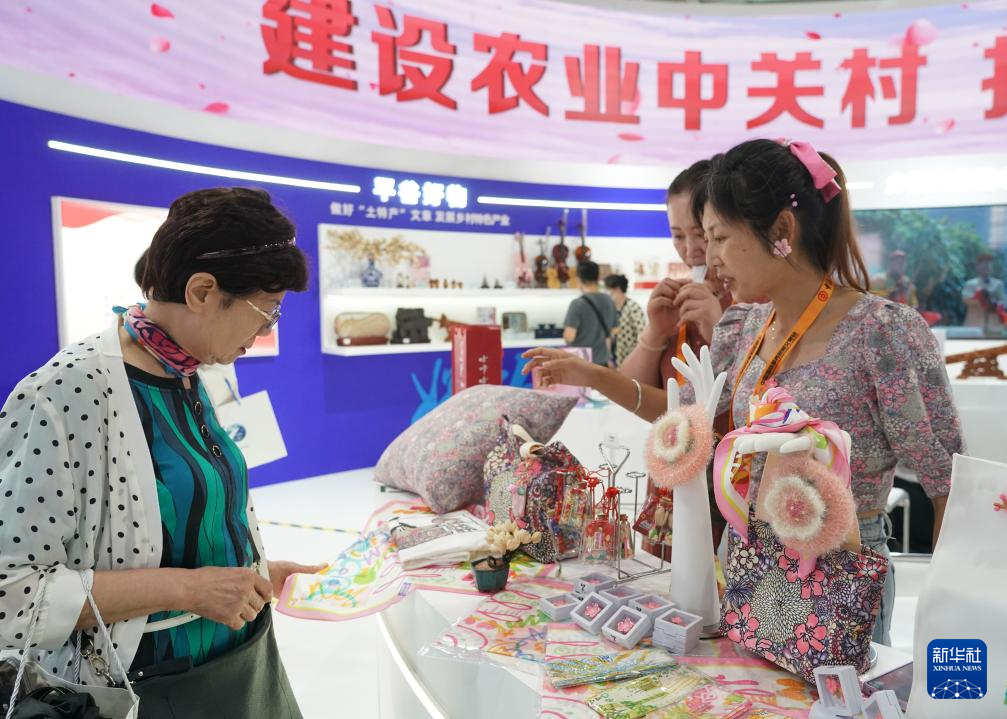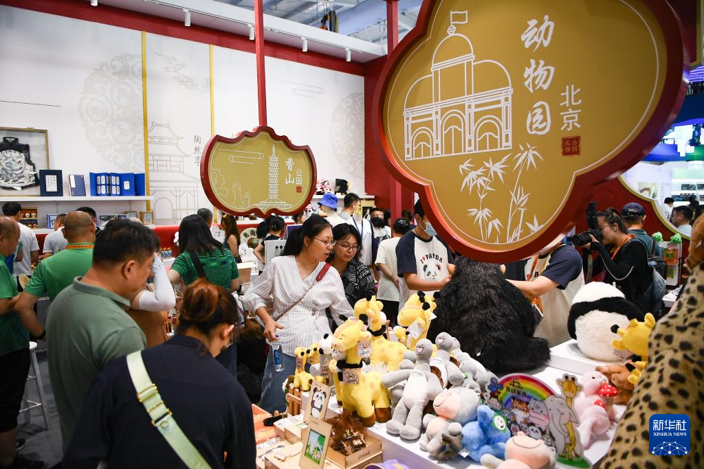 9月6日,观众在服贸会文旅服务专题展区“公园礼物”展位选购北京市各公园的文创产品。