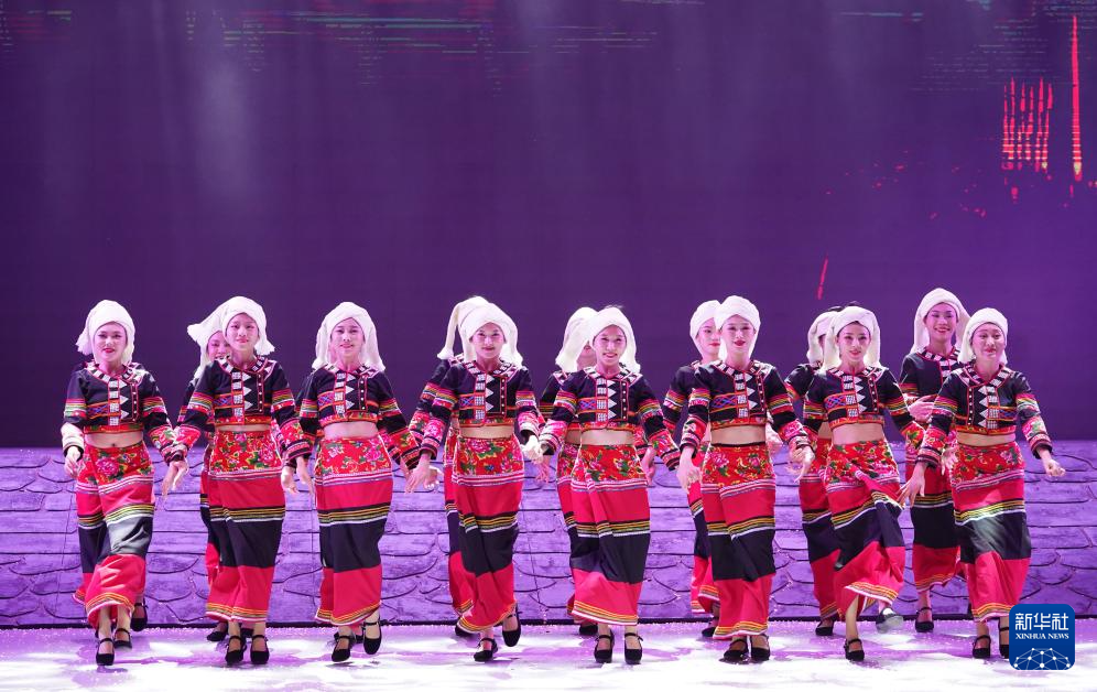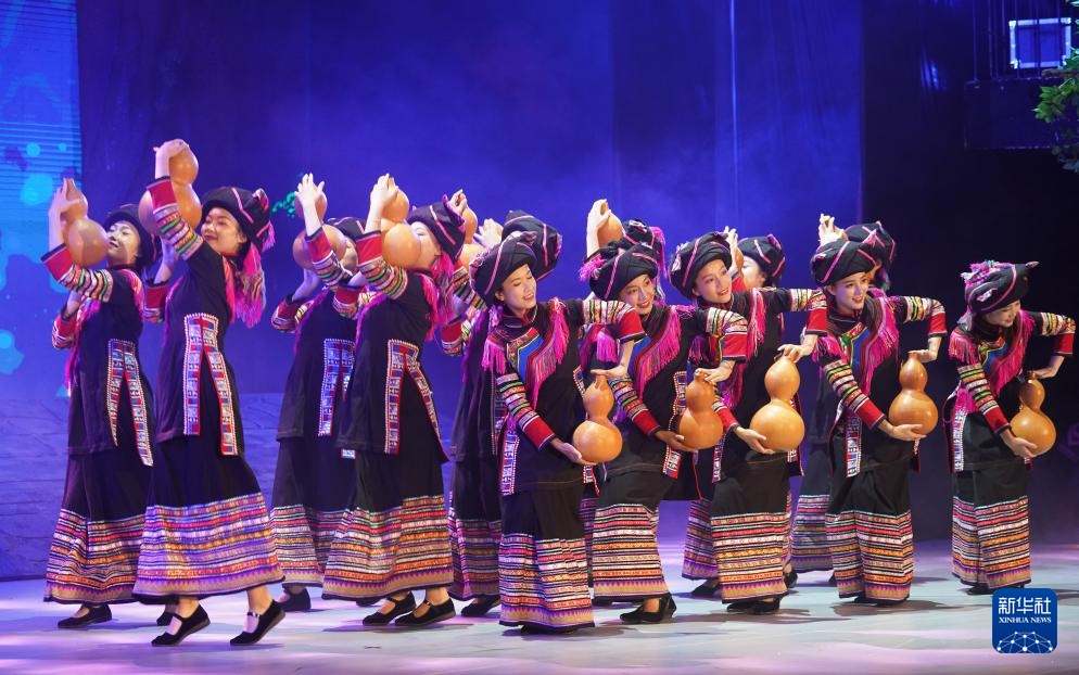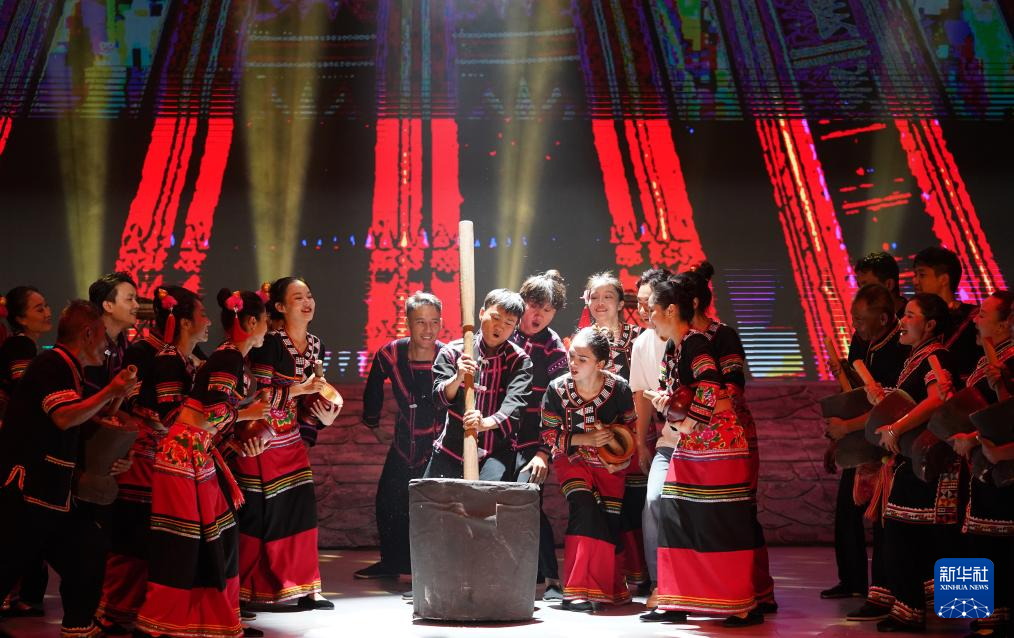9月25日,身着民族服装的演员在云南省澜沧县民族剧院表演。
