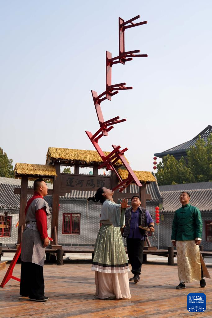 10月17日,杂技演员在吴桥杂技“九月庙会”上表演杂技节目。