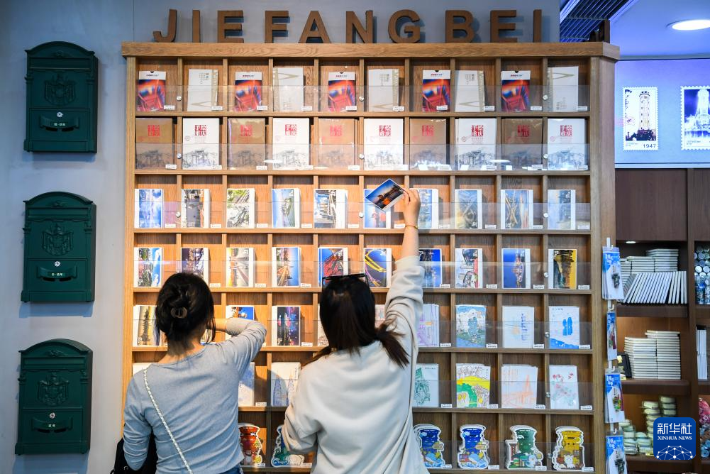 10月29日,游客在位于督邮街的解放碑主题邮局选购明信片。