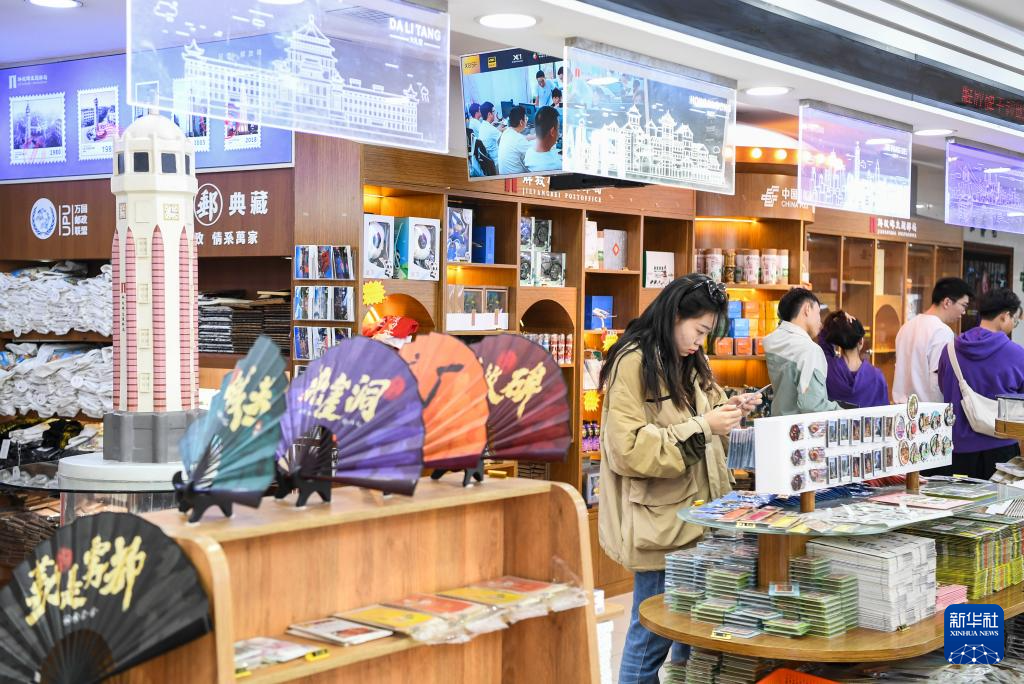 10月29日,游客在位于督邮街的解放碑主题邮局参观、选购。