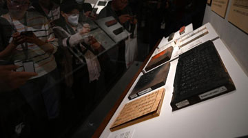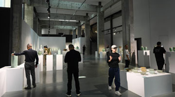 11月8日,魏立中(中)为师生进行展览导赏。