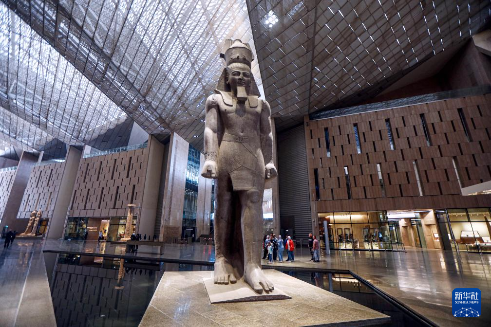 大埃及博物馆位于埃及吉萨金字塔景区附近,占地约49万平方米。目前,该馆部分区域已开放并投入试运行。