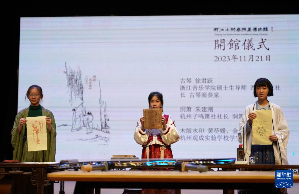 当日,浙江十竹斋版画博物馆开馆仪式在杭州观成实验学校举行。博物馆内举办的十竹斋艺术文献作品展,共展出珍贵木版水印作品、雕版1100多件以及珍贵历史文献实物资料上百件。