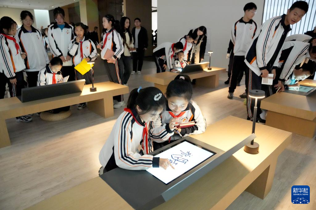 学生在甘肃简牍博物馆参观后签名留念(10月25日摄)。