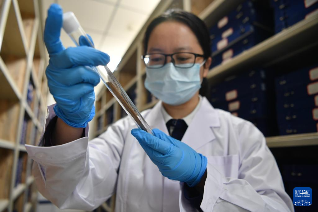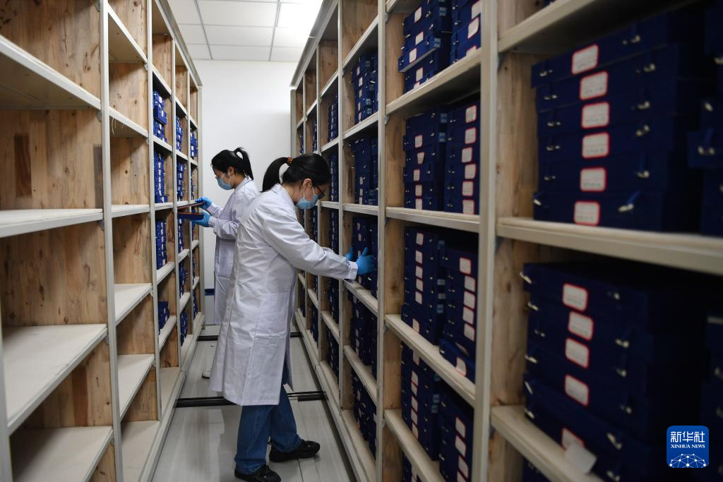 甘肃简牍博物馆科技保护部文物库房管理员进行日常检查(10月26日摄)。
