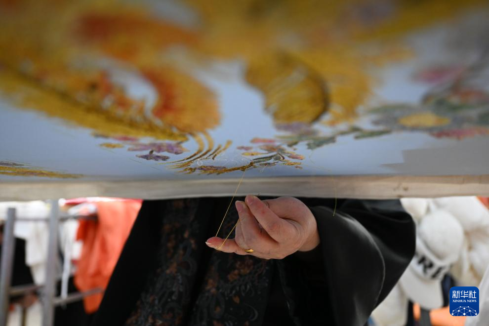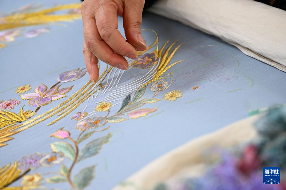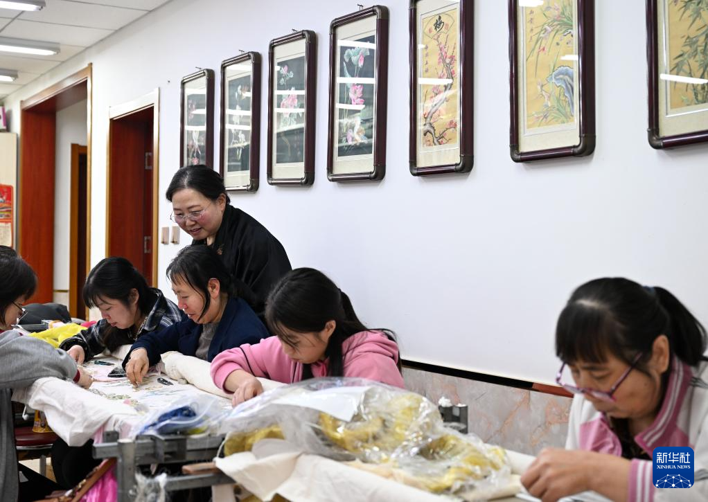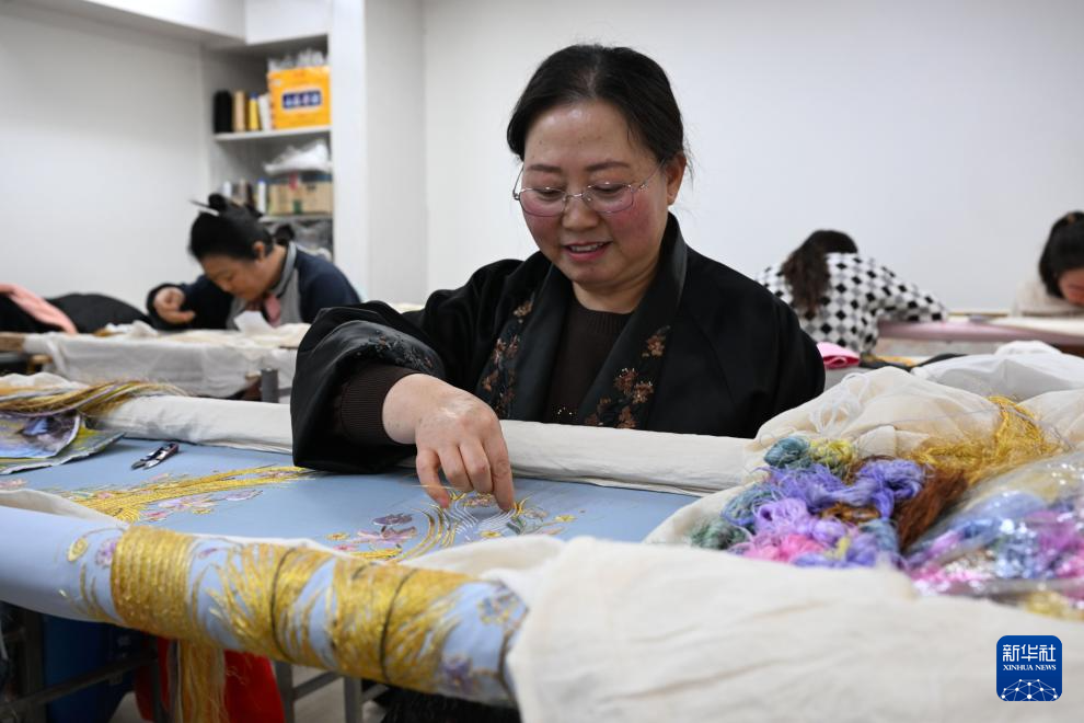 河北省非物质文化遗产项目“王氏宫绣”代表性传承人王国荣潜心研究刺绣30余年。近年来,王国荣在家乡河北省隆化县创立工作室,为高端定制服饰进行代加工,非遗技艺得到传承的同时,还带动当地40多名绣娘发展“指尖经济”,工坊年收益达120余万元。