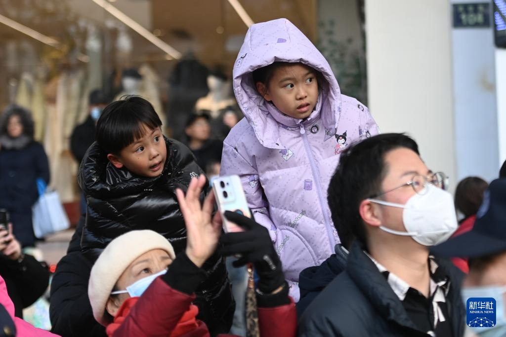 12月16日,观众在街边观看大型机械装置艺术品“龙马精神”巡游。