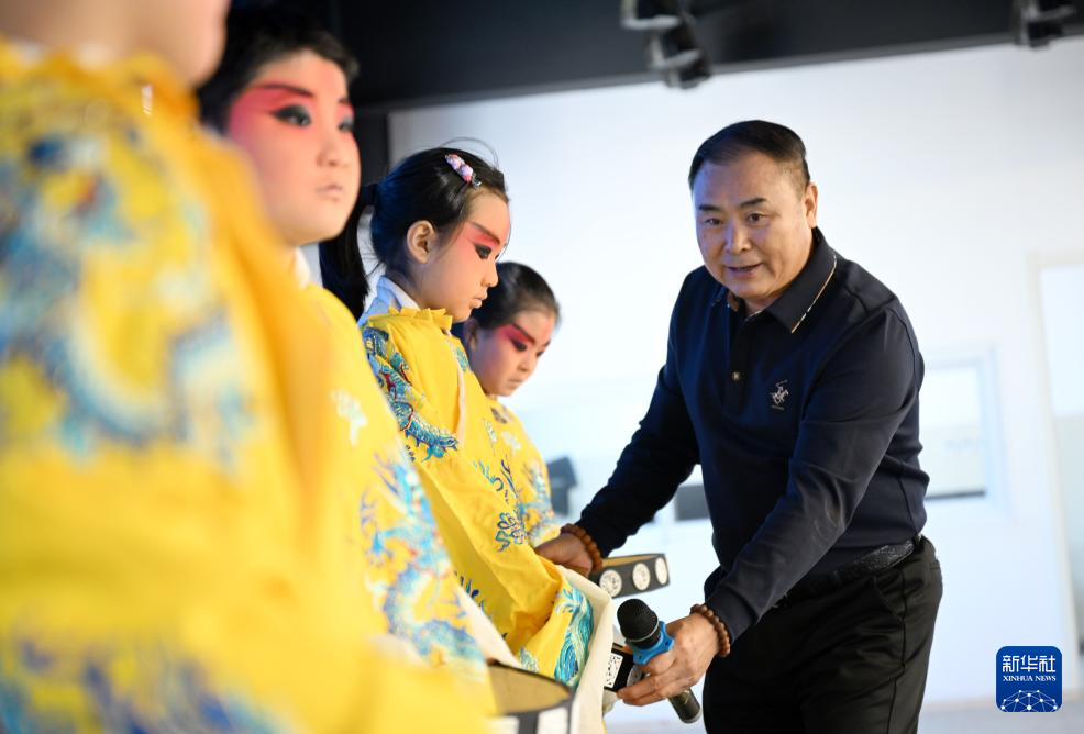 12月27日,在保定市河北小学,国家级非遗项目保定老调省级代表性传承人杜振忠指导学生表演。