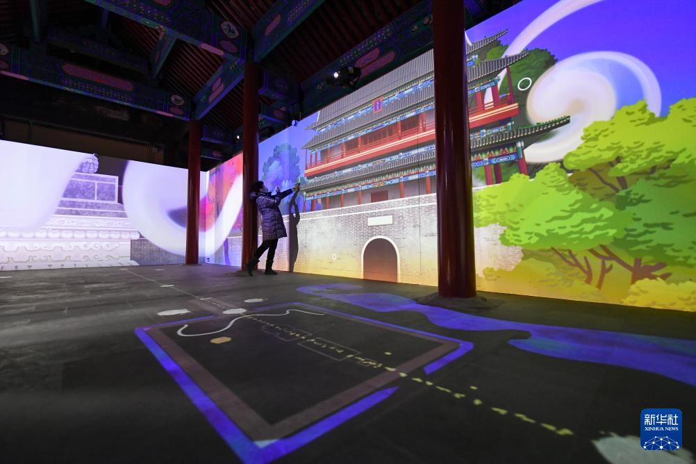 这是1月18日拍摄的宏恩观山门殿里的“山门来吧”数字艺术馆。