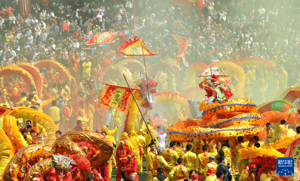 2月19日,人们参加贵州省毕节市百里杜鹃管理区百纳乡舞龙巡游表演。