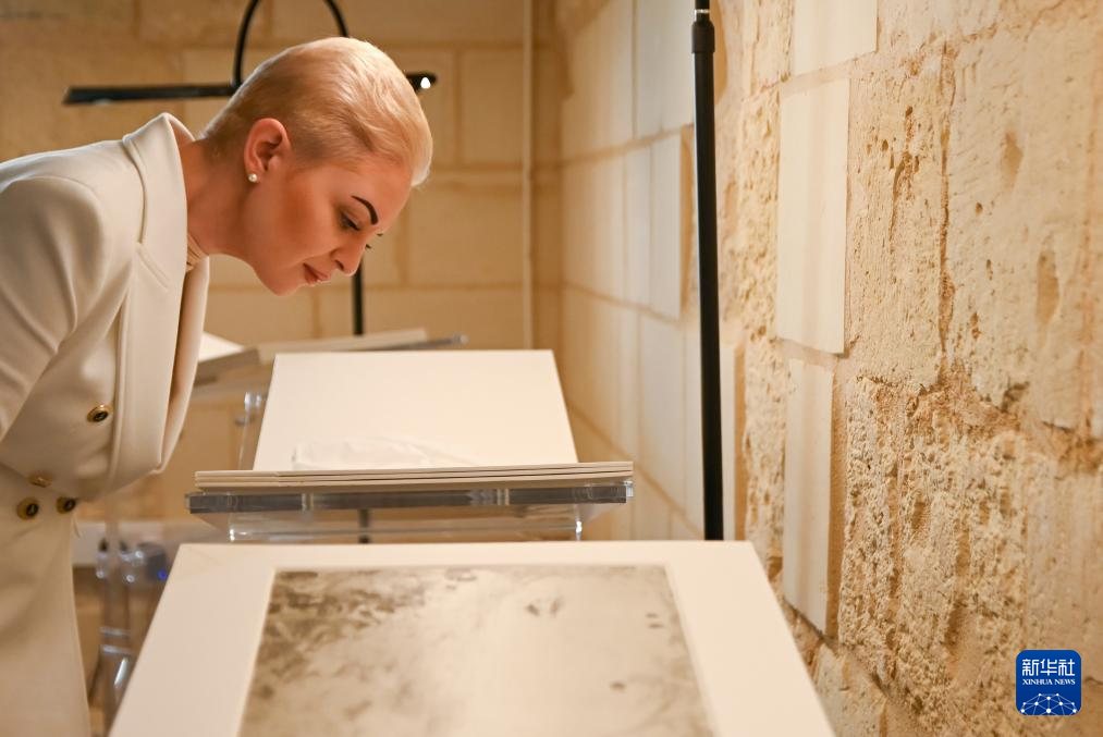 3月15日,在马耳他瓦莱塔,参观者在马耳他艺术双年展中国馆观看展出的作品。