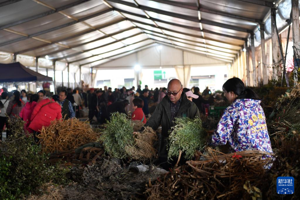 3月19日,消费者在安仁县中草药交易集市挑选中草药。