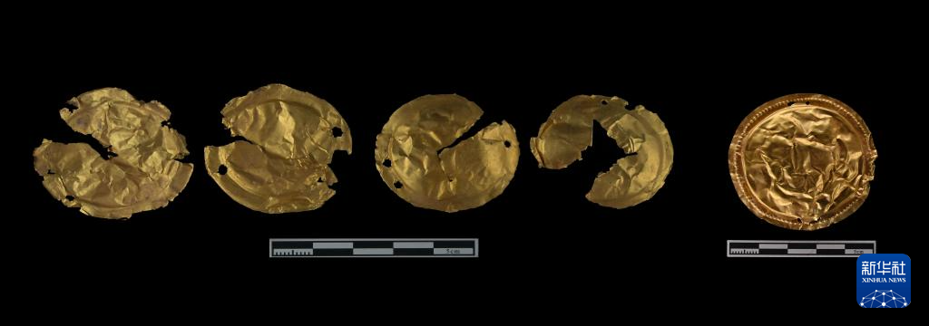 这是郑州商都书院街墓地M2墓葬中出土的金泡(资料照片)。