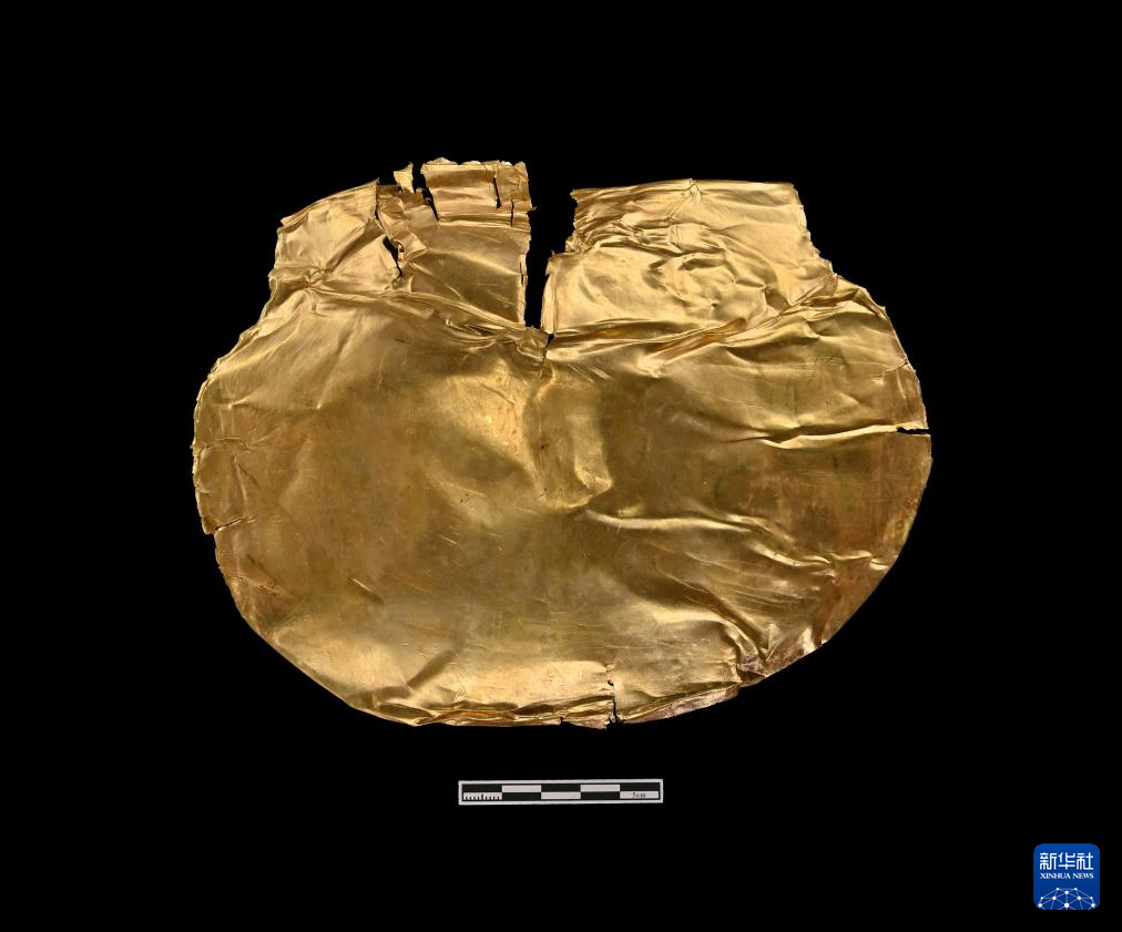这是郑州商都书院街墓地M2墓葬中出土的金覆面(资料照片)。