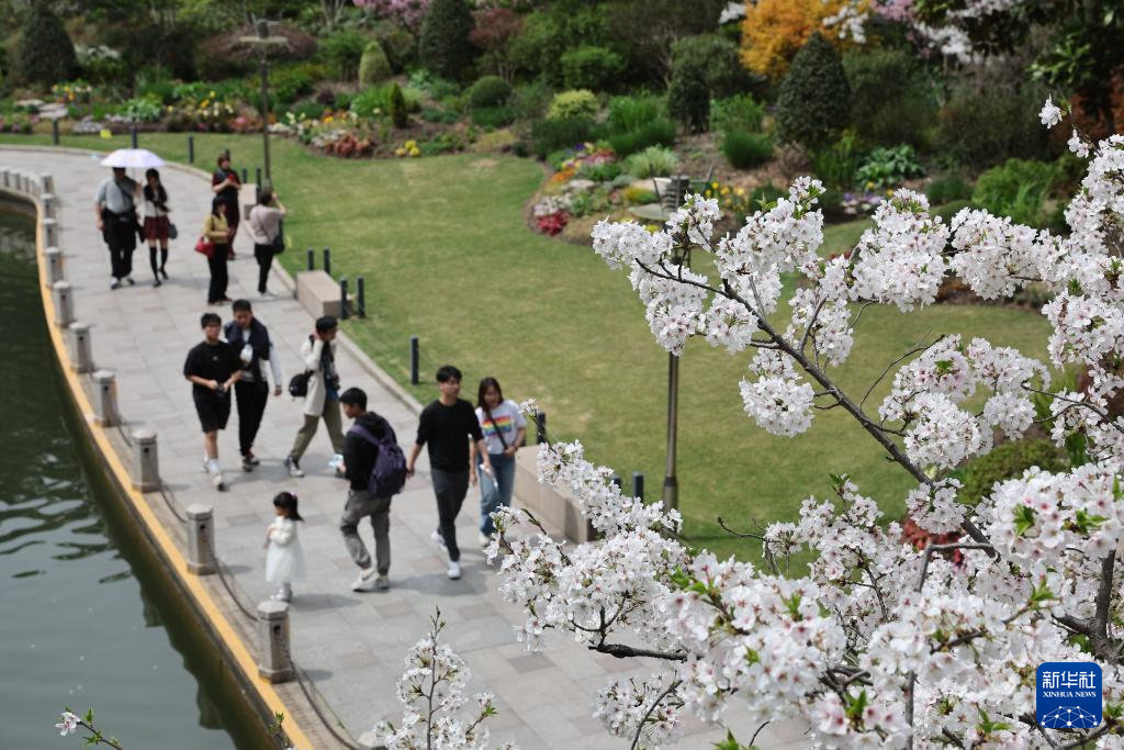 3月30日,人们在徐家汇公园享受春光。
