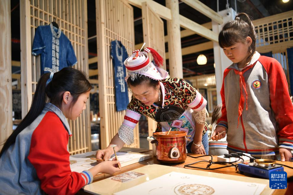 近年来,贵州省黔东南苗族侗族自治州黄平县依托泥哨、刺绣、蜡染等丰富的非物质文化遗产资源,探索开发系列受到学生欢迎的研学课程,让学生“零距离”体验非遗文化,感受非遗魅力。