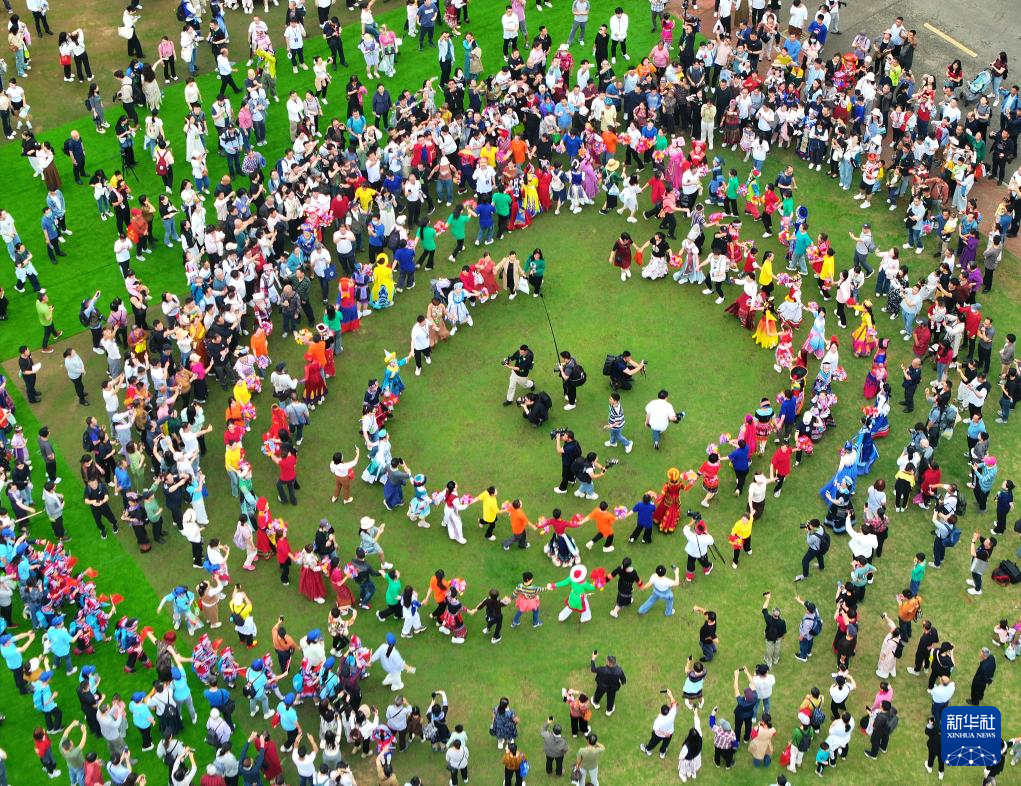 4月11日,群众在广西南宁市青秀山主会场跳舞庆祝(无人机照片)。