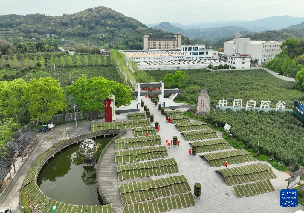 4月10日拍摄的福鼎市点头镇大坪村六妙白茶庄园茶旅结合旅游休闲项目“中国白茶谷”一角(无人机照片)。