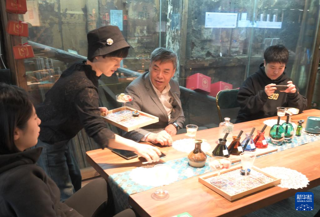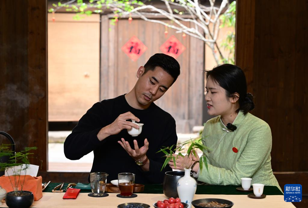 4月9日,年轻消费者在福鼎白琳老街“同顺泰”茶号品尝新式茶饮料。