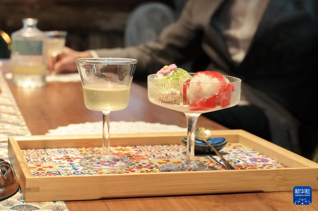4月9日拍摄的白茶冷萃原液制成的“白茶甘露冰淇淋”等新式冷饮。
