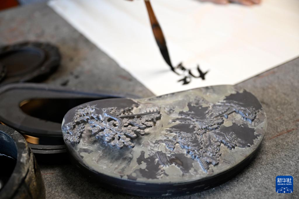 砚台凝结着雕刻的时光,浓缩着闫森林对贺兰砚制作技艺的理解与热爱。一方造型优美、意境悠远的贺兰砚散发着古朴的光泽,助力文人墨客描绘大好河山,讴歌伟大时代的美好画卷。