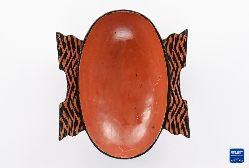 武王墩墓出土的漆耳杯(5月15日摄)。新华社发