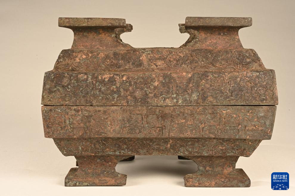 武王墩墓出土的铜簠(5月15日摄)。新华社发