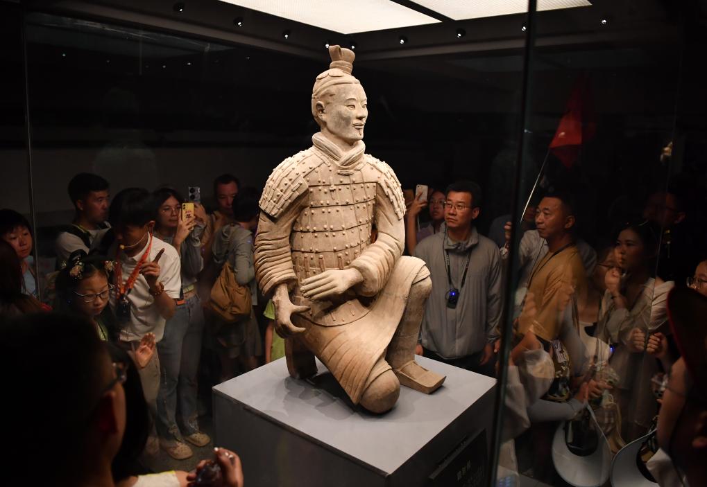 站在秦始皇帝陵博物院一尊陶俑前,英国游客塔米拉屏住呼吸。“他已经‘2000多岁’了,但盔甲和头发上的细节依然清晰可见。”塔米拉不禁惊叹,“令人难以置信!”