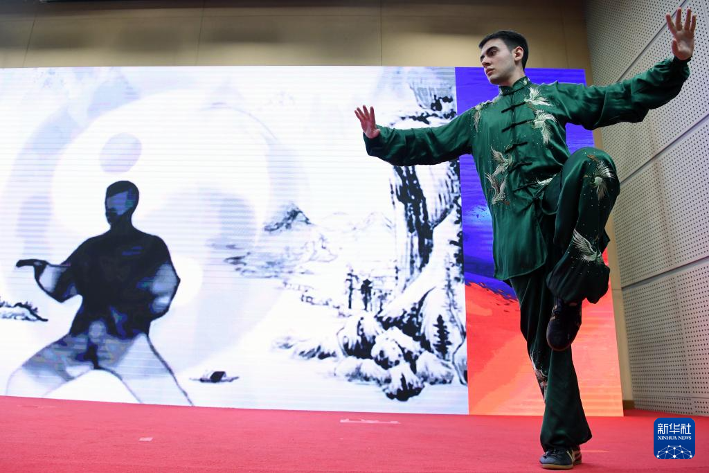 5月28日,来自巴西的获奖选手马飞龙在颁奖典礼上表演太极拳。