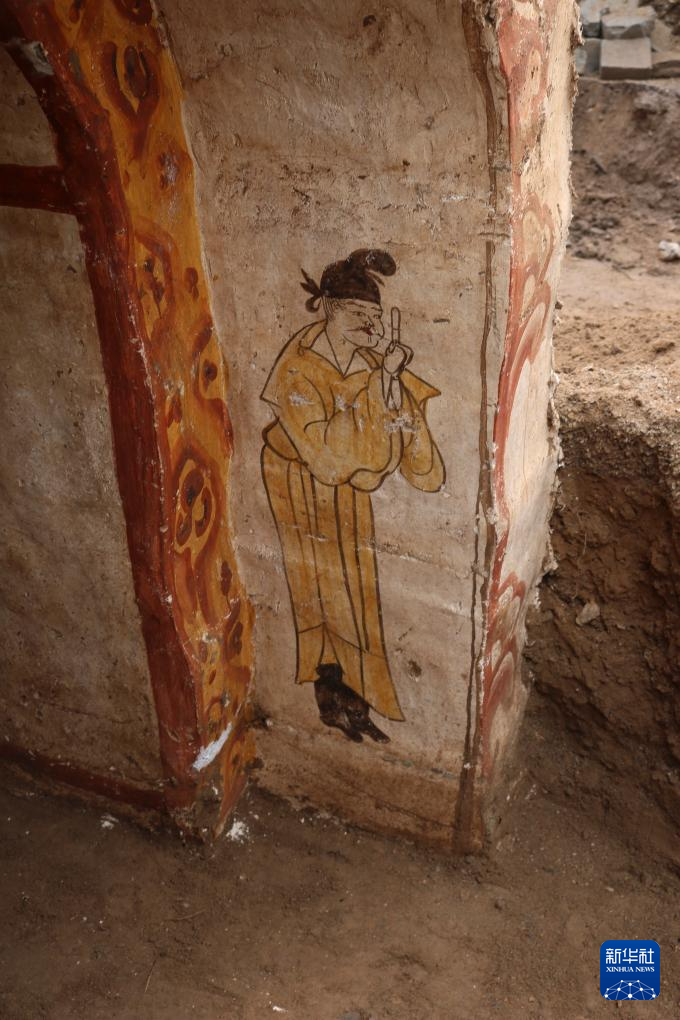 这是墓门东壁壁画(资料照片)。新华社发(太原市文物保护研究院晋阳古城研究所供图)